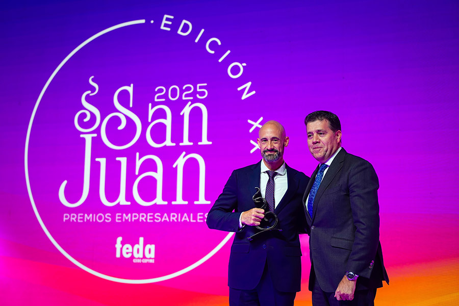 Entrega: Cristóbal Sánchez Martín, director Centro de Empresas Albacete Caixabank. Recoge: Juan Antonio Gómez González, CEO.