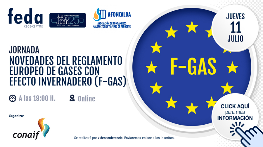 | El objetivo de esta jornada es explicar las novedades del Reglamento UE 2024/573, sobre los gases fluorados de efecto invernadero (F-Gas). Se hablará de las restricciones en el uso de gases refrigerantes, del control de fugas, de la comercialización de equipos y de las repercusiones para las empresas instaladoras. | |||||||