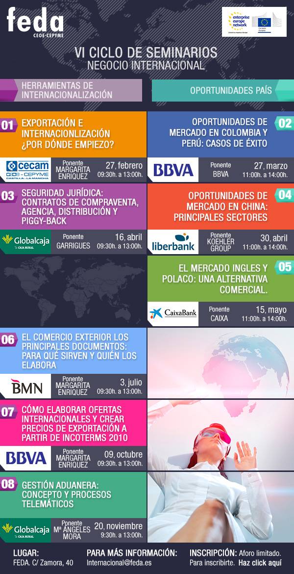 Este es ya el sexto año que FEDA a través de la Enterprise Europe Network organiza un ciclo de seminarios orientados al Negocio Internacional, y seguimos apostando por ello, explorando diferentes mercados y ofreciendo la posibilidad de recibir formación actualizada y en tiempo record para aquellos que inician su aventura o que ya se han consolidado en uno o varios países.