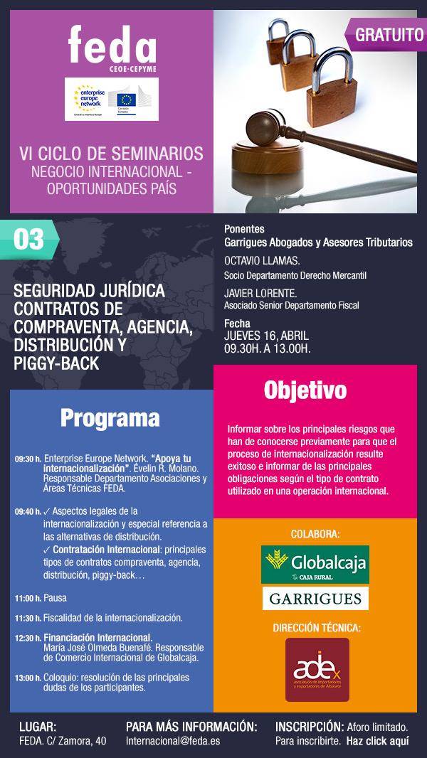 VI CICLO DE SEMINARIOS: Negocio Internacional, SEGURIDAD JURÍDICA INTERNACIONAL CONTRATOS DE COMPRAVENTA, AGENCIA, DISTRIBUCIÓN Y PIGGY-BACK