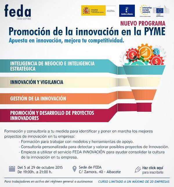 Siguiendo nuestra línea de formación y consultoría a través de FEDA INNOVACIÓN queremos animarte a participar en este nuevo programa dirigido a PYMES y nuevas empresas con capacidad de innovar en fases iniciales de asimilación de la innovación como parte relevante de su estrategia de apertura y diferenciación de mercado.