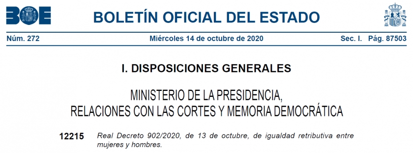 Se ha publicado en el BOE de 14 de octubre, el Real Decreto 902/2020, de igualdad retributiva entre mujeres y hombres.