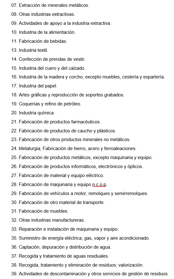 a) Las empresas que tengan la consideración de pyme, o de Gran Empresa del sector industrial, cuyo CNAE 2009 se encuentre dentro de los siguientes: