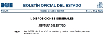 Con fecha de 9 de abril de 2022 se ha publicado en el BOE la nueva Ley 7/2022, de 8 de abril, de Residuos y Suelos Contaminados para una Economía Circular.