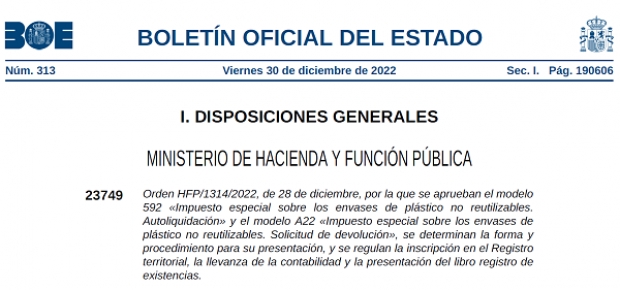 Se ha publicado la Orden HFP/1337/2022, de 28 de diciembre por la que se aprueba el modelo 593 “Impuesto sobre el depósito de residuos en vertederos, la incineración y la coincineración de residuos. Autoliquidación”