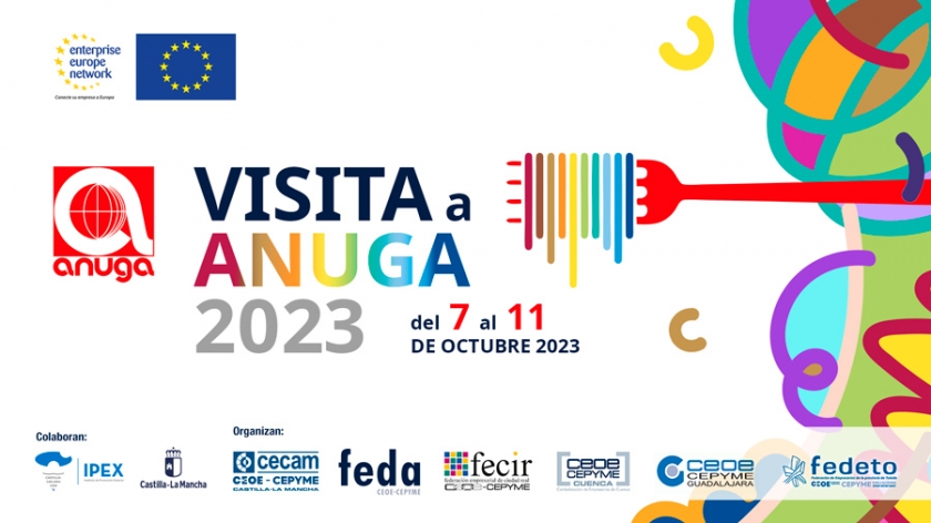 El Instituto de Promoción Exterior de Castilla-La Mancha (IPEX),con la colaboración con la Confederación de Empresarios de Castilla-La Mancha (CECAM), promueve la participación de empresas de Castilla-La Mancha en la VISITA A LA FERIA DE ANUGA 2023 que tendrá lugar del 7 al 11 de octubre en Colonia, Alemania.
