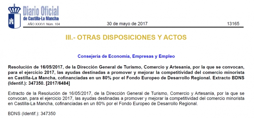 Han sido publicadas en el DOCM las subvenciones del Programa Adelante Comercio Minorista para promover y mejorar la competitividad del comercio minorista de Castilla- La Mancha, modernizando su actividad, consolidando el tejido empresarial existente, estimulando el empleo e incrementando su rentabilidad.