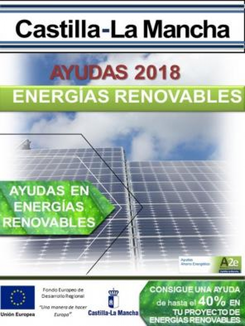 El día 29 de diciembre de 2017 se ha publicado en el Diario Oficial de Castilla-La Mancha la Resolución de 22/12/2017, de la Dirección General de Industria, Energía y Minería, por la que se convocan ayudas, cofinanciadas por el Fondo Europeo de Desarrollo Regional, para el aprovechamiento de las energías renovables en Castilla-La Mancha para 2018.