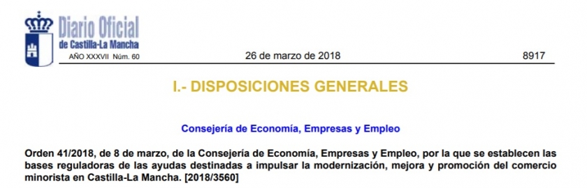 Han sido publicadas en el DOCM las bases reguladoras de las ayudas destinadas a impulsar la modernización, mejora y promoción del comercio minorista en Castilla-La Mancha.