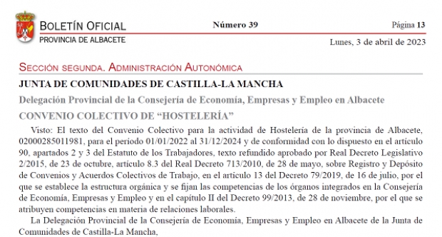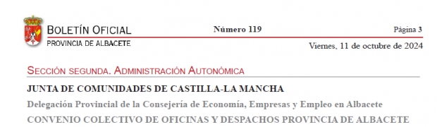 Publicado Convenio Colectivo de Oficinas y Despachos de la Provincia de Albacete 2024-2026.