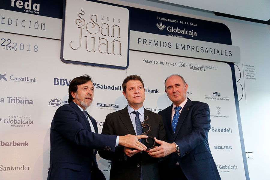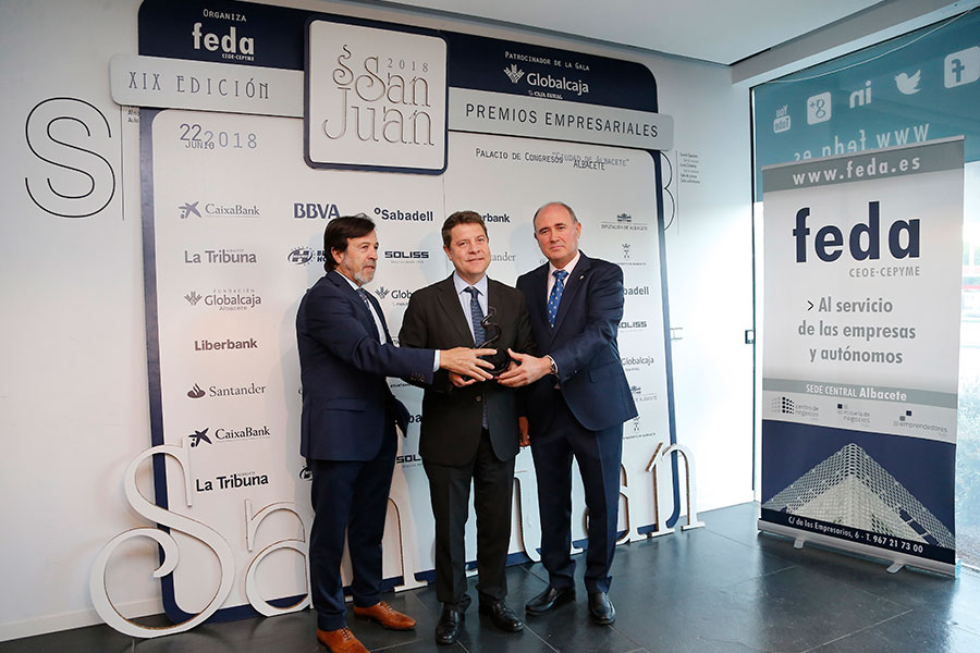 Además del reconocimiento al presidente de Castilla-La Mancha, FEDA ha galardonado este año, a través de sus Premios San Juan-XIX Edición, la labor de Artclima, S.L., de Almansa; Goyval Vinagres, S.L., de Madrigueras; Eurontur S.L., de Ontur; Camacho Reclicling, S.L., de Caudete; Manuel Martínez Marhuenda y Daniel Bonill Guillén, de Búho Blanco Arquitectos, de Villarrobledo; Mª José Haro Mateo, de Lacados Artealba, S.C., de Albacete; Joyeria el Diamante Azul; la Asociación Provincial de Distribuidores, ADISAB; la comarca de la Sierra del Segura; Cervezas Ilunica, C.B., de Hellín; el pediatra del Centro Hospitalario Universitario de Albacete, Antonio Javier Cepillo; el empresario Rafael Candel; y la cantautora y compositora María Rozalén, a la que FEDA ha nombrado, asimismo, ‘Embajadora de Albacete’.