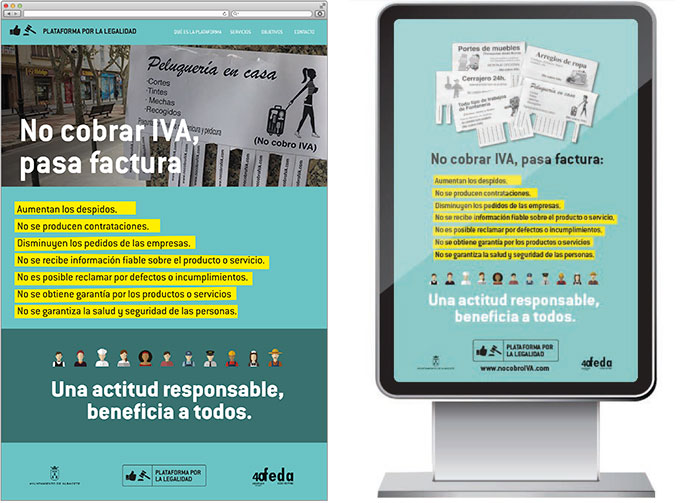 Los anuncios no dan teléfono sino la web www.nocobroiva.com y en ella el ciudadano puede comprobar que se trata de una iniciativa de FEDA y el Ayuntamiento dentro de su plataforma por la legalidad.