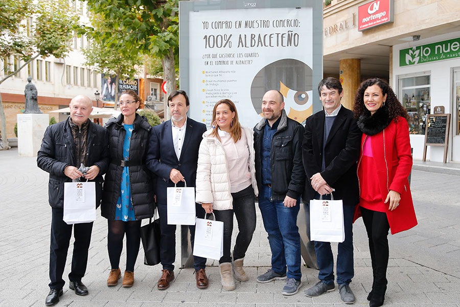 La campaña se presentó en el centro neurálgico de la ciudad, en la Plaza de la Constitución, con representantes de la Federación de Comercio, entre ellos su presidente, José Lozano; acompañado del presidente de FEDA, Artemio Pérez Alfaro; y el alcalde de Albacete, Manuel Serrano, y la concejala de Promoción Económica, Rosa González.