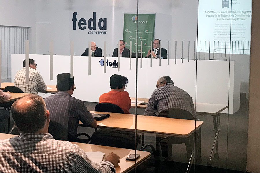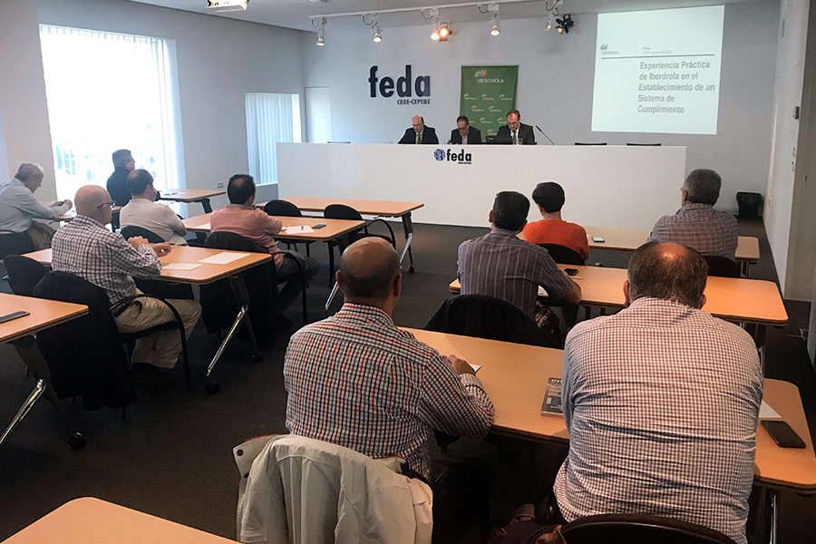 Dentro de la línea de colaboración de Iberdrola con FEDA, se ha celebrado una jornada en la que se han dado cita medio centenar de empresas interesadas en la cultura de cumplimiento, ante la responsabilidad penal societaria.