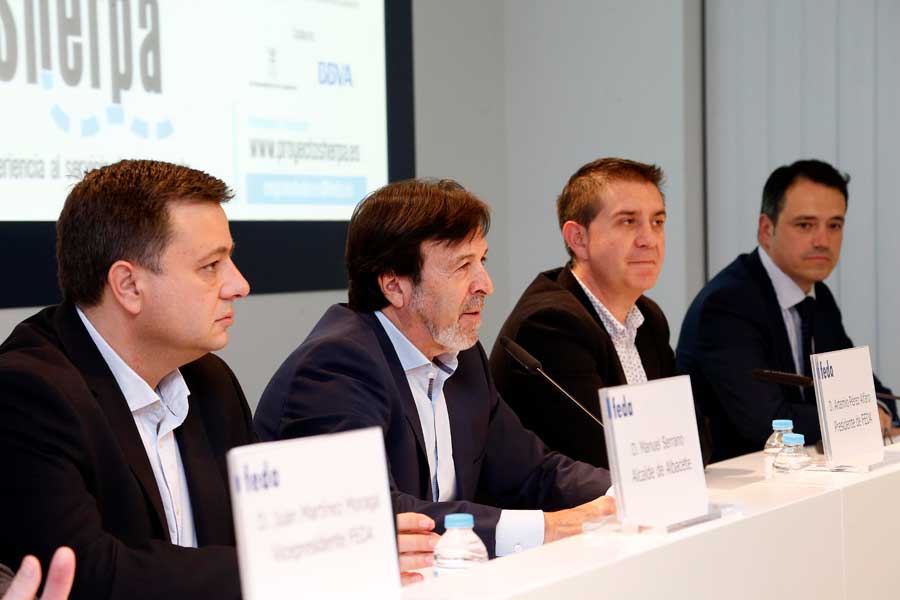 Artemio Pérez Alfaro ha estado acompañado por Juan Martínez Moraga, miembro del Comité Ejecutivo de FEDA, y por representantes de los tres colaboradores de este Programa Sherpa: Santiago Cabañero, presidente de la Diputación Provincial; Manuel Serrano, alcalde de Albacete; y Samuel García Eslava, director de Empresas de BBVA. Los tres han mostrado su total predisposición y apoyo a FEDA para la organización de la séptima edición.