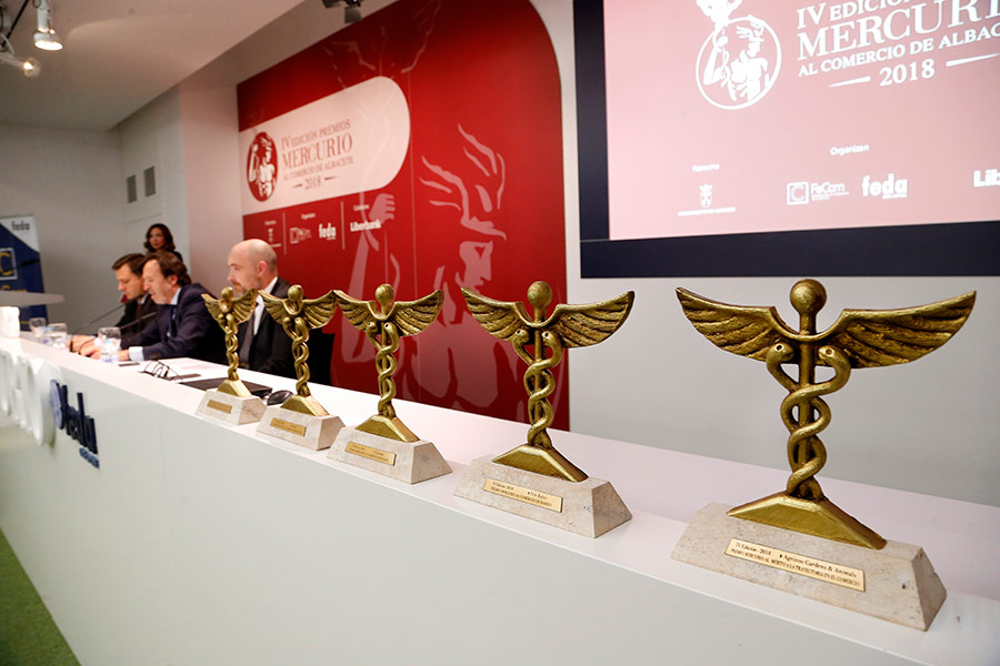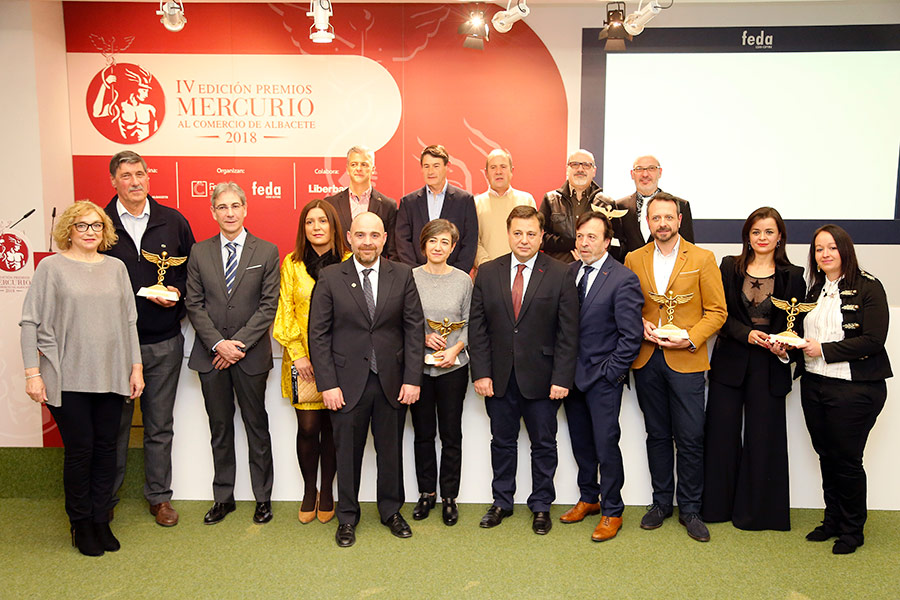 Los comercios de Albacete ya tienen sus Premios Mercurio. La cuarta edición de estos galardones de reconocimiento al sector comercial de Albacete se entregó en un acto celebrado en la noche de ayer en la sede de FEDA.