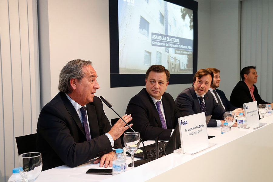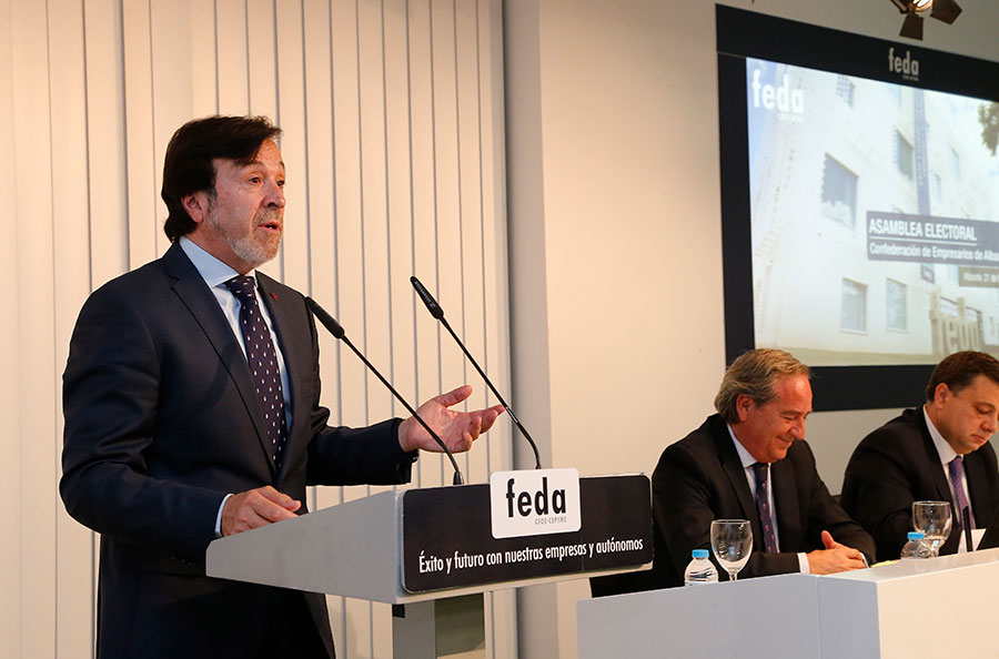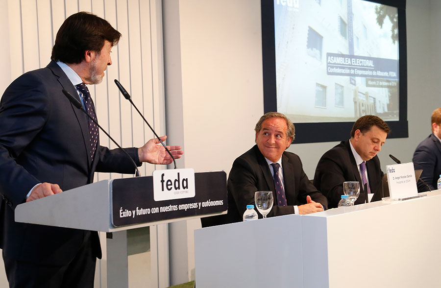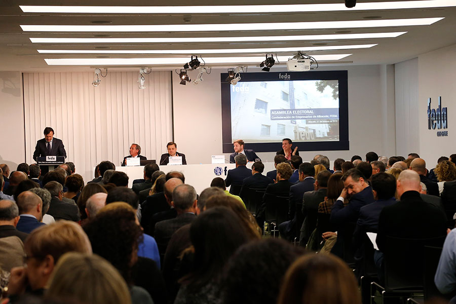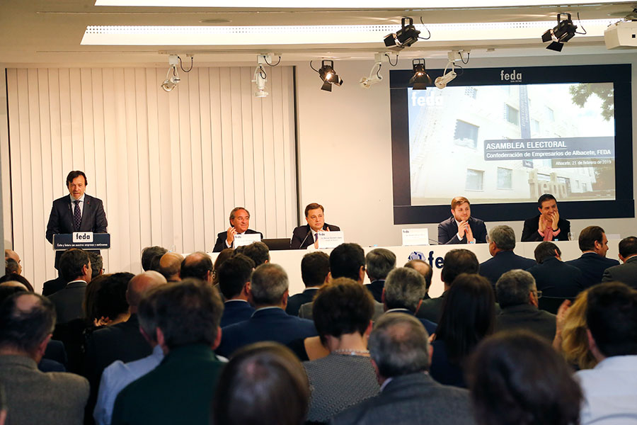Un confianza en el presidente otorgada por la Junta Directiva de FEDA, los numerosos empresarios, compromisarios de las asociaciones, el equipo técnico de la organización y el apoyo de los representantes institucionales que estuvieron presentes en la Asamblea: el alcalde de Albacete, el presidente de la Diputación, el consejero portavoz del Gobierno regional y el presidente de CECAM, que formaron la mesa de clausura.