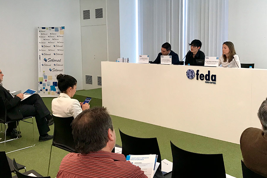 El equipo técnico del Departamento Jurídico y Laboral de FEDA expuso las novedades para el autónomo del referido Real Decreto, incidiendo en el incremento de la base mínima de cotización, la ampliación de las coberturas obligatorias y las novedades en la tarifa plana, entre otros.