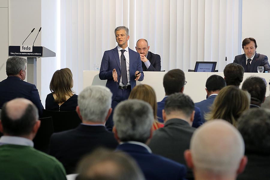 El informe del secretario general repasó las acciones, servicio y trabajo de la Confederación, divididos en 7 bloques que conforman la propuesta de valor que ofrece FEDA: Relevo generacional, invertir para competir, cumplimiento normativo, desarrollo del talento, internacionalización, asociacionismo y desarrollo territorial.