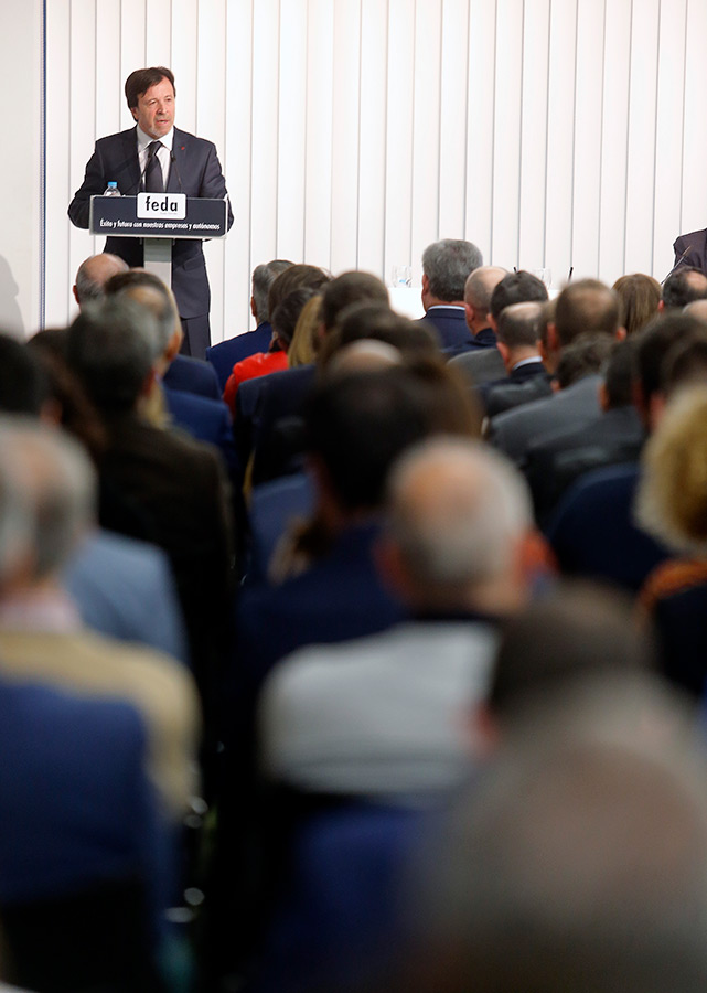 A lo largo de su intervención, el presidente destacó la actividad asociativa de FEDA, “por eso, superados los primeros 40 años de esta casa, dos principios siguen siendo básicos: representación y servicio. Servicio al asociado, a los intereses generales de las empresas y a la sociedad en su conjunto. Poniendo en marcha nuevos proyectos y nuevas actuaciones en su beneficio, manteniendo siempre un contacto directo e intenso con el empresario y arrancando con los emprendedores”.