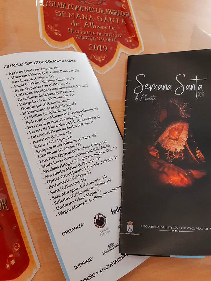 Comercios albaceteños asociados a la Federación de Comercio de Albacete, FECOM, integrada en FEDA, participan como “establecimiento colaborador” en la Semana Santa de Albacete 2019, Declarada de Interés Turístico Nacional.