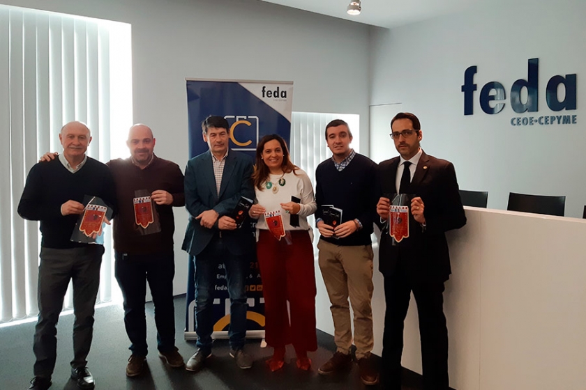 Esta colaboración del comercio de Albacete, a través de la Federación de Comercio, se ha presentado hoy en FEDA, con la presencia del presidente de FECOM, José Lozano Tendero, acompañado de otros miembros de su Comité Ejecutivo, como Luis Ramirez Sánchez, Ana Bielsa Sánchez, Leopoldo Salvador Cifuentes, junto con el tesorero y secretario de la Junta de Cofradías de Semana Santa, Juan Escobar Guirao y Antonio Martín Ruiz.