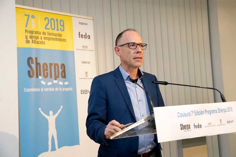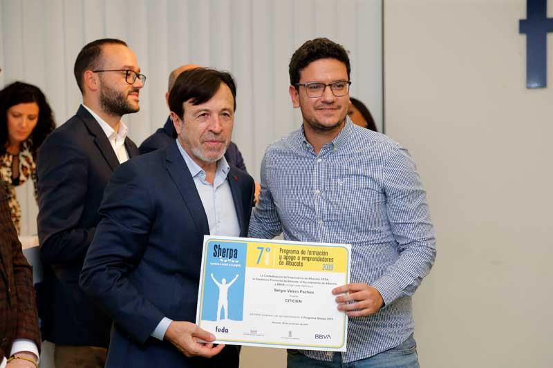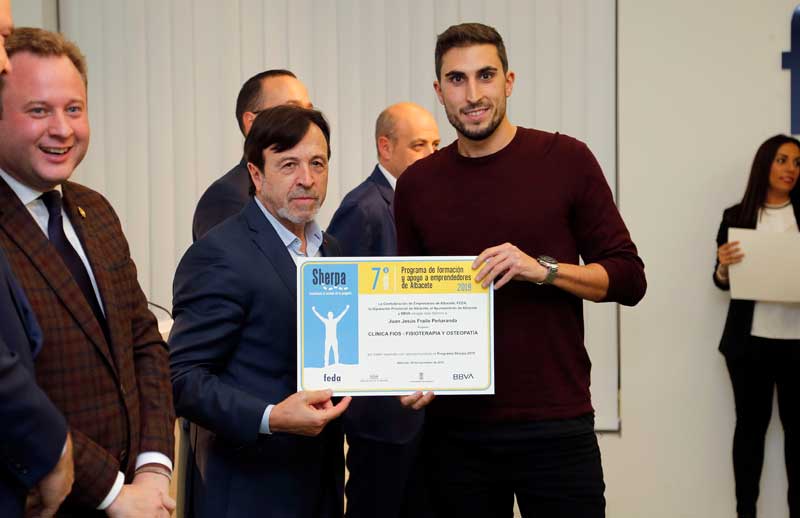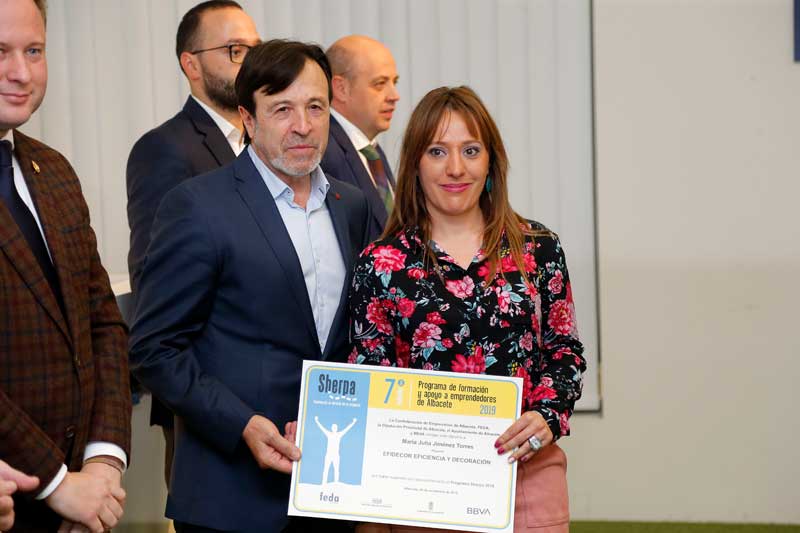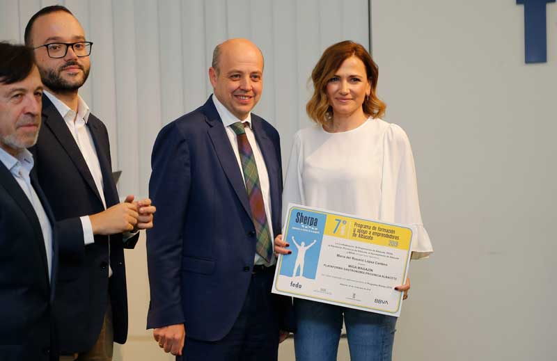 Artemio Pérez Alfaro ha estado acompañado por Juan Martínez Moraga, vicepresidente de FEDA; Vicente Casañ, alcalde de Albacete; Francisco Valera, vicepresidente de la Diputación Provincial, y Fernando Gimeno, director del centro de banca clientes del BBVA en Albacete. Todos ellos han puesto sobresaliente a este Programa que, con su colaboración, lidera FEDA y que pone en el mapa de la provincia a los emprendedores. En este acto de clausura, las dos instituciones y BBVA han manifestó su compromiso para continuar con la edición de 2020.