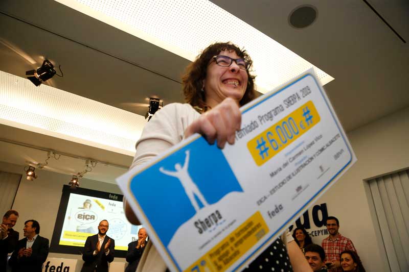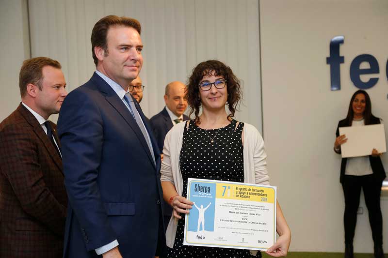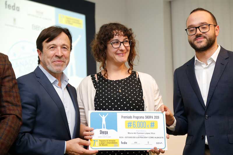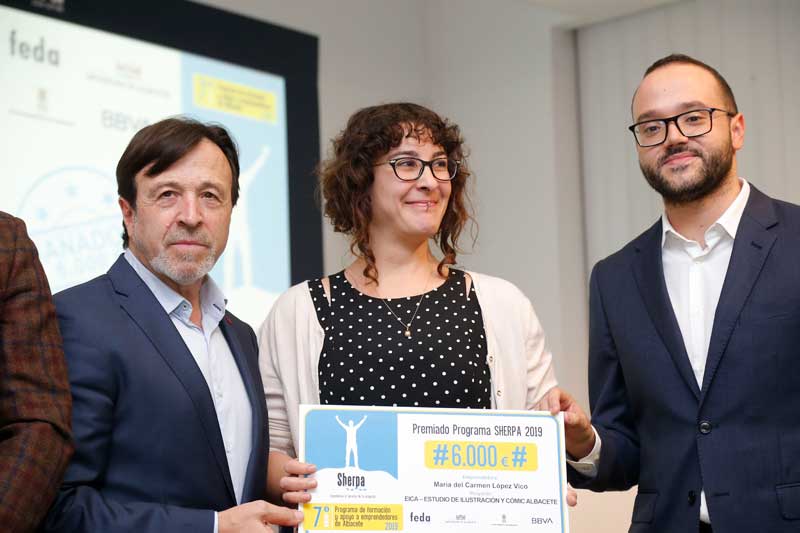 María del Carmen López Vico, con su proyecto EICA Ilustración y Cómic, ha sido la ganadora del primer premio, dotado con 6.000 euros, de la 7ª Edición del Programa Sherpa de apoyo a emprendedores de FEDA, que cuenta con el apoyo de la Diputación Provincial de Albacete, Ayuntamiento de Albacete y BBVA.