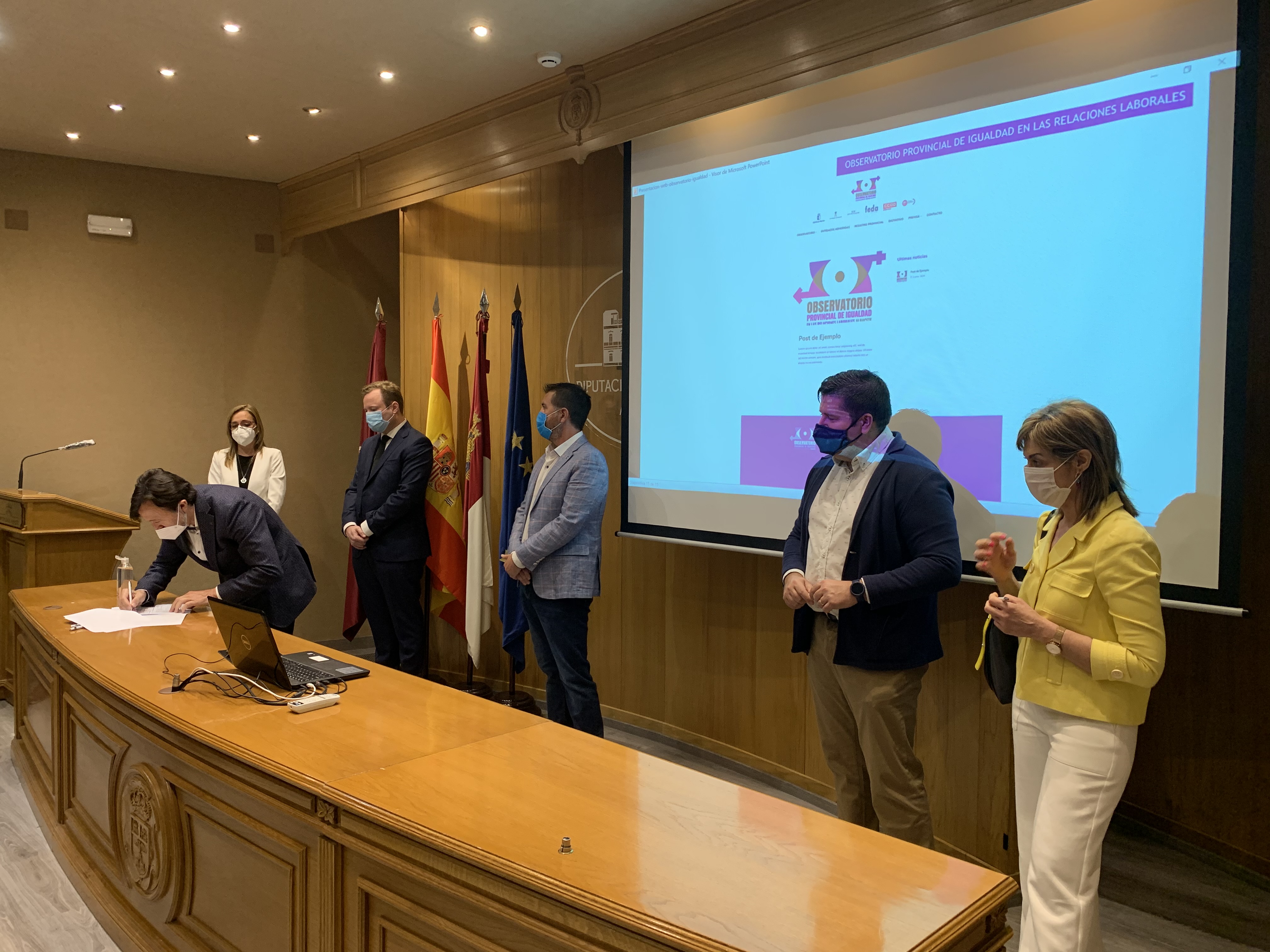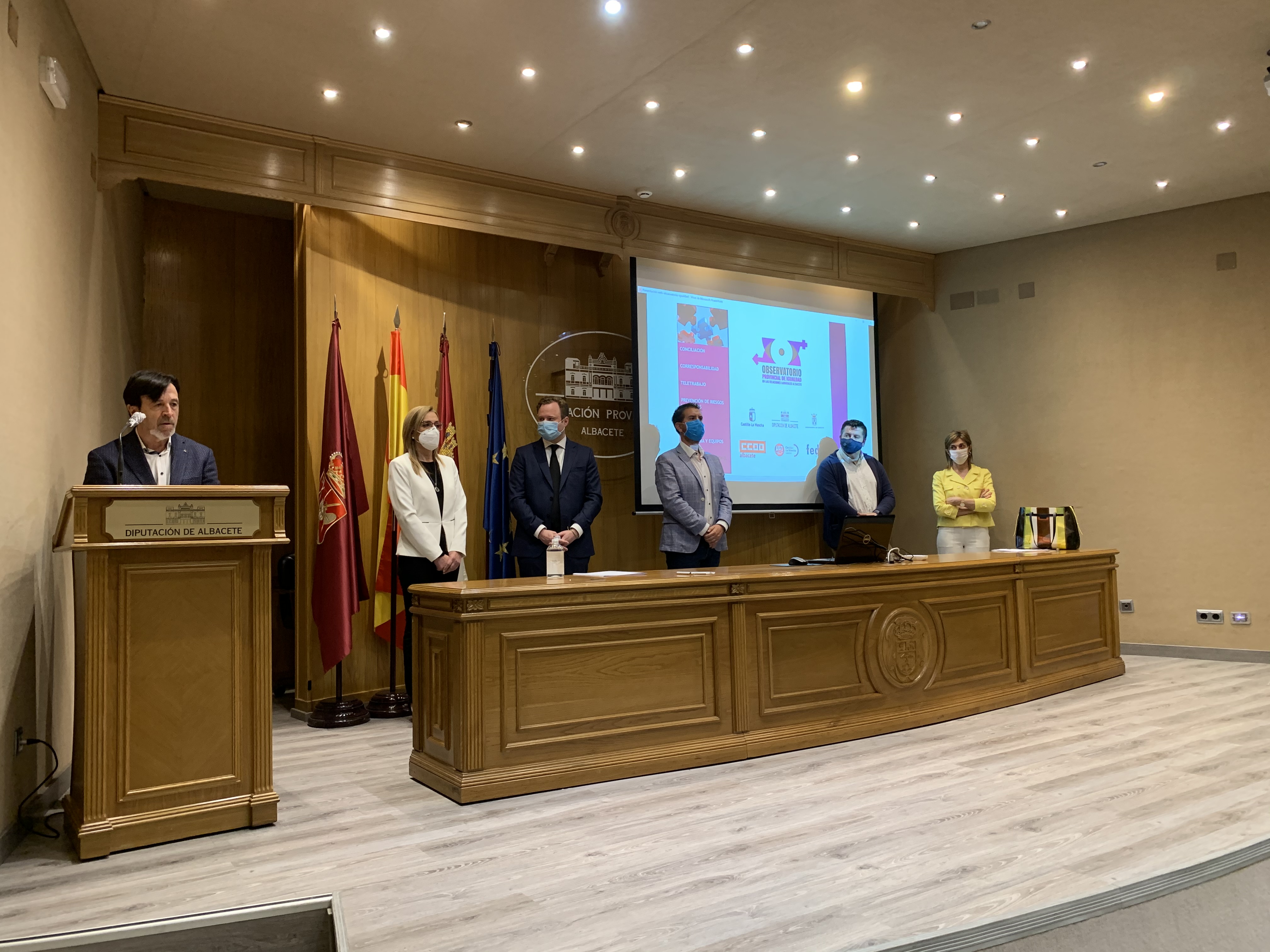En una comparecencia pública ante los medios de comunicación, se ha presentado en el Observatorio Provincial de Igualdad en la Relaciones Laborales. Un proyecto pionero en España en busca de la igualdad efectiva y real entre hombres y mujeres en el ámbito de las relaciones laborales y personales, promovido por los agentes sociales, FEDA y los sindicatos CC.OO y UGT, y al que se han sumado las instituciones, Diputación Provincial, Ayuntamiento de Albacete y el Gobierno regional, a través de la Consejería de Igualdad.