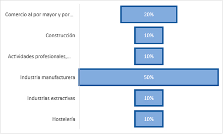 Durante el pasado año, desde el Servicio de Apoyo a la Inversión de FEDA, bajo la Dirección Técnica de Capazita, y junto a un gran número de empresas, formalizamos un total de 11 proyectos presentados a las convocatorias para el Programa Adelante – Fomento de la Inversión. El 91% de los proyectos que han sido presentados a este programa han sido concedidos, llegando a una cifra de alrededor 350.000,00 euros obtenidos que irán destinados a la ampliación y mejora de la productividad de nuestras empresas. Estas ayudas se caracterizan por tener un amplio volumen de beneficiarios. A continuación, mostramos un gráfico donde se desglosa, por sectores, las concesiones de ayudas obtenidas.