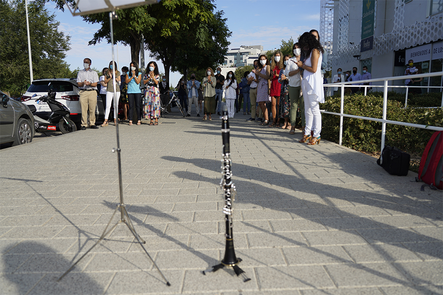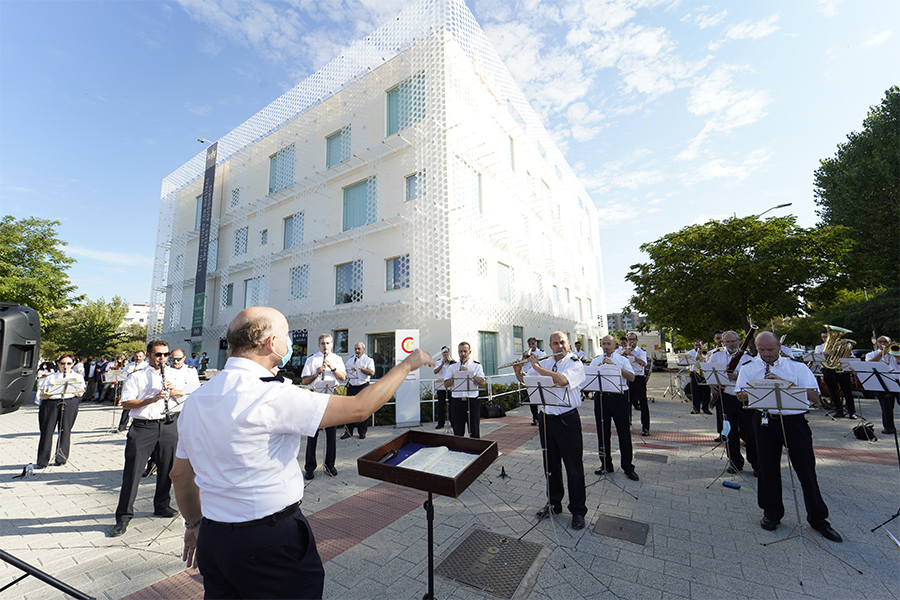 Ha sido con el edificio de FEDA de fondo donde la Banda Sinfónica Municipal de Albacete ha ofrecido un repertorio de cinco piezas en reconocimiento a empresas, autónomos, asociaciones sectoriales, trabajadores y trabajadoras por su trabajo en la crisis sanitaria que España, y por ende Albacete, está viviendo desde el pasado mes de marzo.