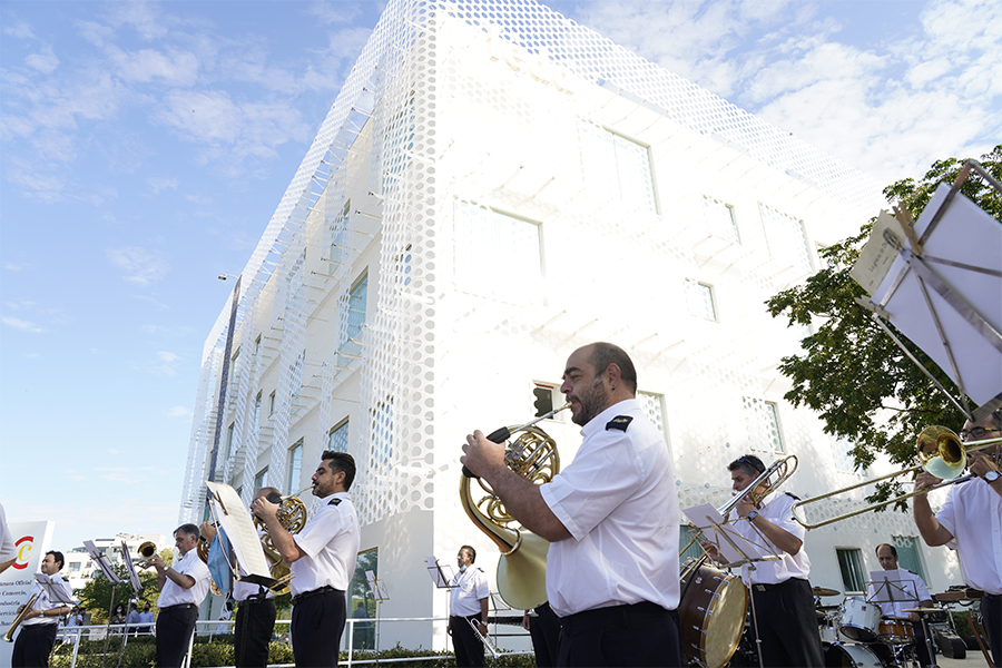 La Banda ha recibido fuertes aplausos de las personas congregadas, no solo el equipo técnico de FEDA, sino también personas que se han encontrado con la sorpresa en su paseo por la calle de los Empresarios.