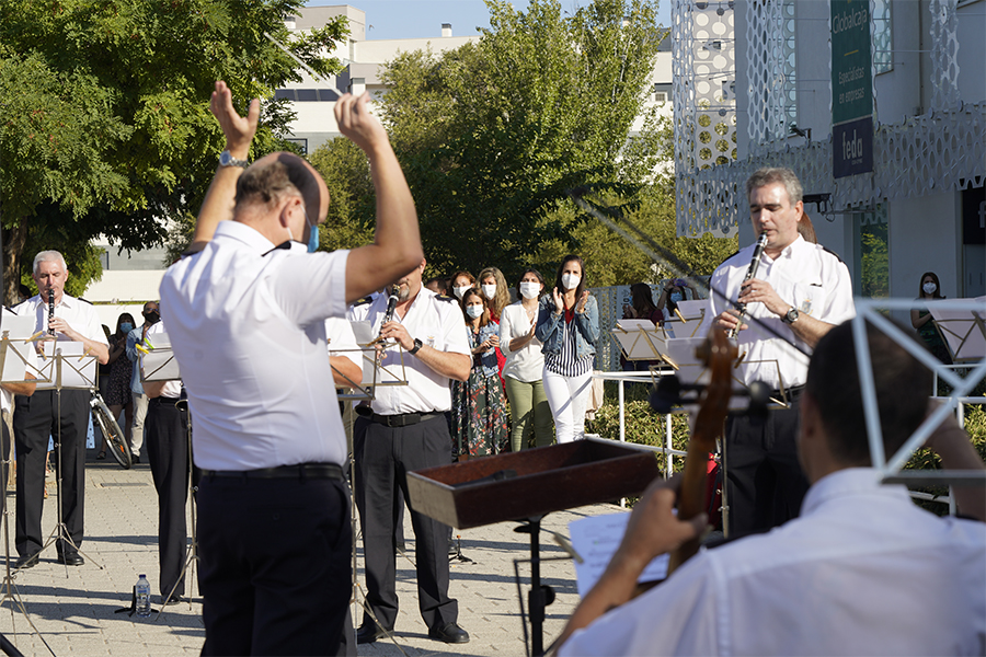 Por su parte el vicealcalde, ha tenido palabras de recuerdo para nuestra Feria, “en circunstancias normales estaríamos en celebrando la mejor Feria del mundo, pero nada mejor que aunar esfuerzos todos para la del año próximo. Rendimos así, con el cariño de la Banda, con música y corazón, a empresas y autónomos y al mismo tiempo a persona, familias y también empresas que esta maldita pandemia está destrozando”.