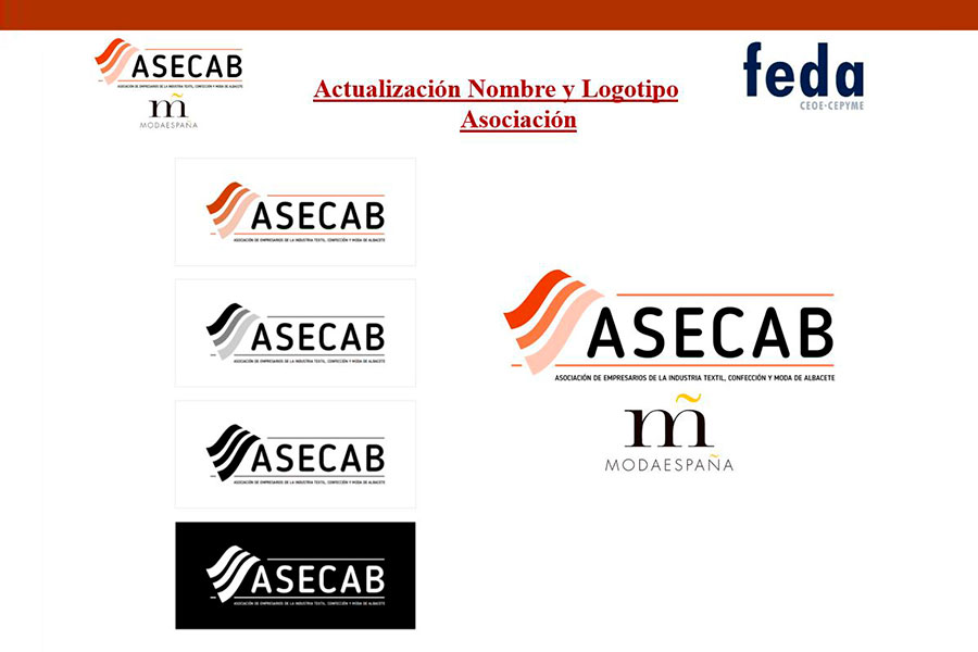 Al cierre de la Asamblea se presentó también un restyling del histórico logotipo de ASECAB que hace conjunto con la ampliación de su ámbito de actuación y nomenclatura, ya registrado, industria textil, confección y moda, sin cambiar su acrónimo con el que ya es reconocido desde siempre.