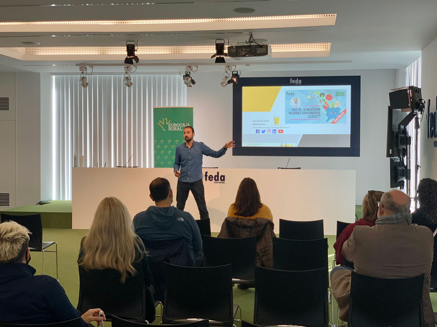 La conferencia ¿Qué tal “Alimentación saludable con productos locales”? ha sido impartida esta mañana por el experto dietista-nutricionista Aitor Sánchez, natural de Albacete, quien ha analizado las claves de una alimentación sana y sostenible, local y de temporada. Junto al presidente de FEDA, Artemio Pérez Alfaro, el director territorial de Eurocaja Rural en Albacete, Carlos Prior, ha participado en este evento para trasladar el compromiso de la entidad financiera con el tejido productivo de la zona y fomentar el consumo de productos de cercanía.