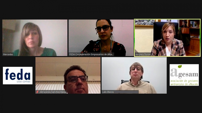 Miembros de la Asociación de Gestores Ambientales de Albacete, AGESAM, integrada en FEDA, han mantenido de manera telemática una reunión con Amparo Torres, vicepresidenta de la Diputación de Albacete y responsable del Consorcio Provincial de Medio Ambiente para acordar posibles colaboraciones que fomenten actuaciones reales enfocadas en la Economía Circular.