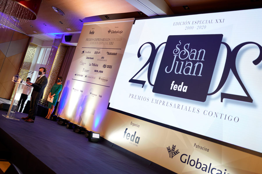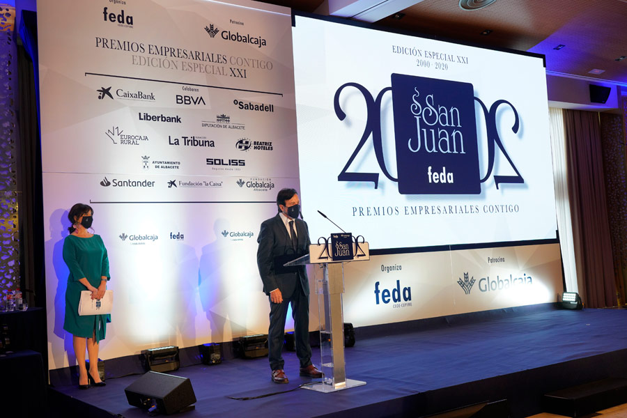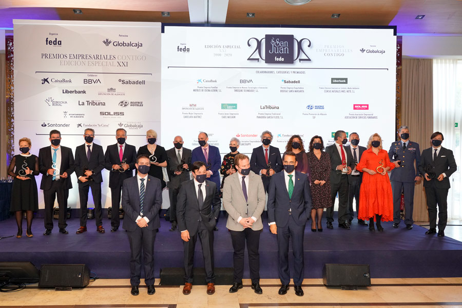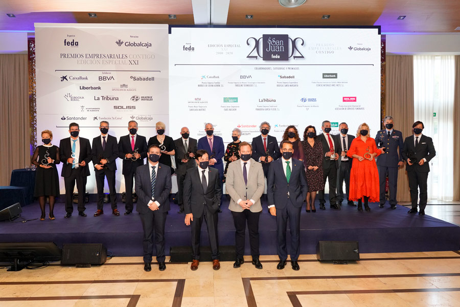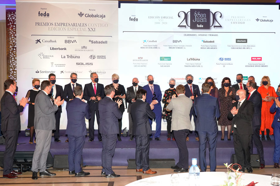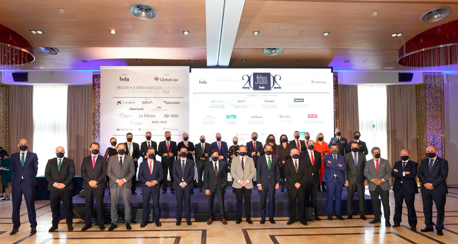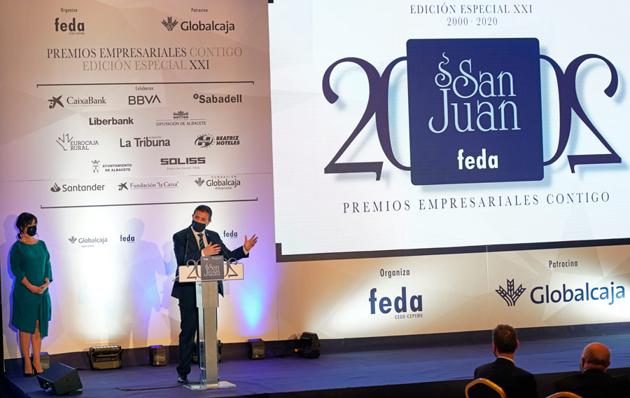 La Confederación de Empresarios de Albacete, FEDA, entregó los XXI Premios Empresariales San Juan’ 2020, Edición Especial ‘Contigo’. Un emotivo acto que sirvió como reconocimiento al buen hacer de empresas, empresarios, empresarias, autónomos, autónomas, asociaciones y colectivos sociales y profesionales.