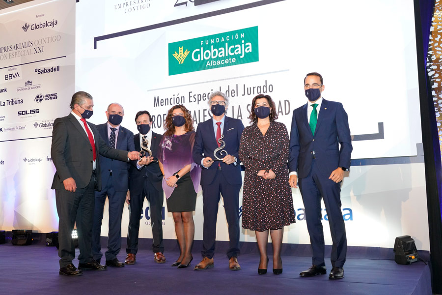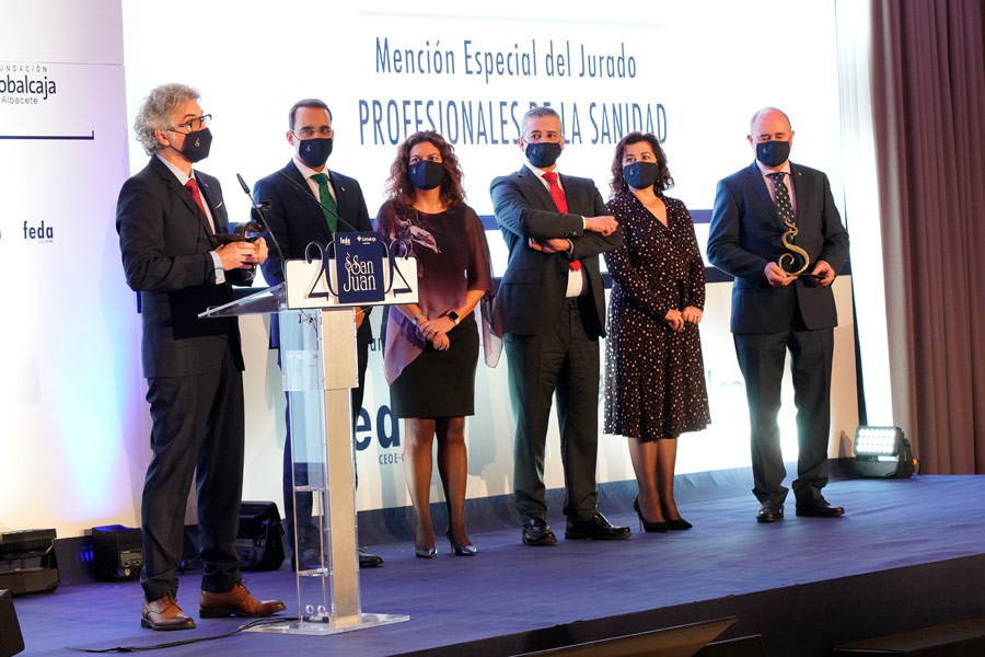 En nombre de los profesionales de la Sanidad recogieron la Mención Especial del Jurado el director médico de la GAI de Albacete, Alberto Sansón; la directora de Gestión, María Hoyos; y la directora de Enfermería, hasta finales de noviembre, Gloria Marco; Jesus Martínez Cañavate, director médico de Quirón Salud Albacete y Quirón Santa Cristina.