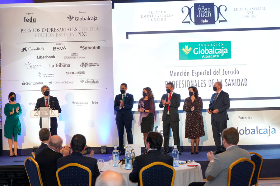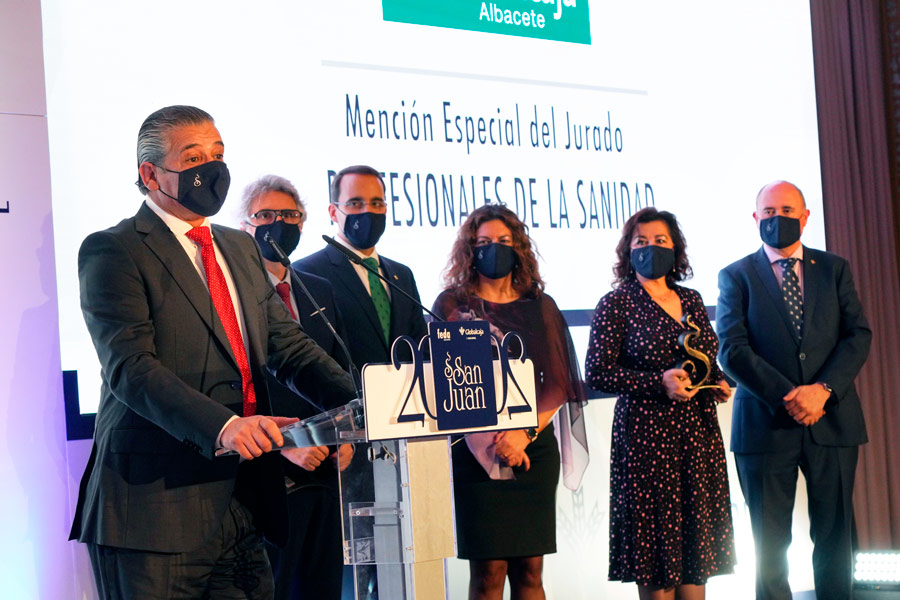 - Mención Especial del Jurado: PARA LOS PROFESIONALES DE LA SALUD, del ámbito público y privado, que conforman la Sanidad en la provincia de Albacete: Profesionales sanitarios y no sanitarios de Atención Primaria, Atención Hospitalaria, Inspección, Urgencias, Emergencias y Transporte Sanitario y Salud Pública. Con la colaboración de la Fundación Globalcaja-Albacete.