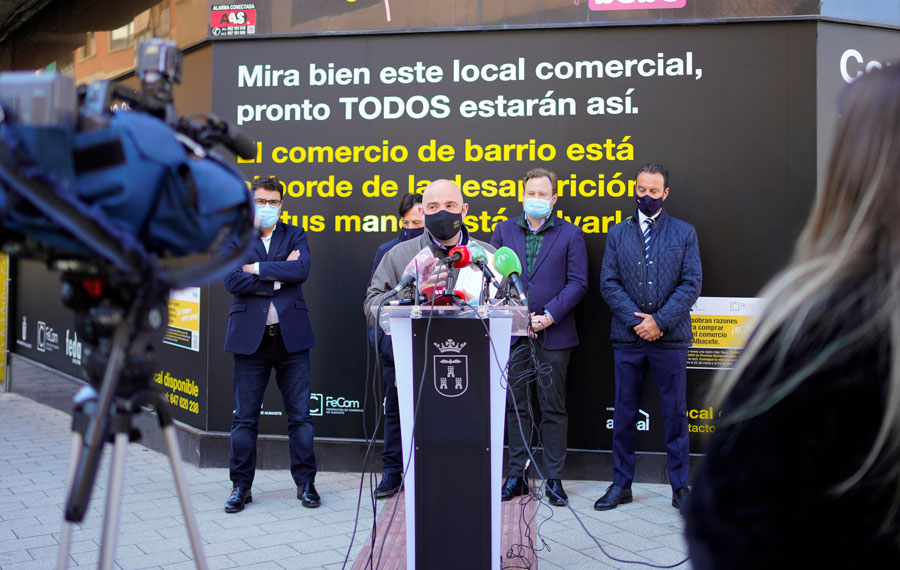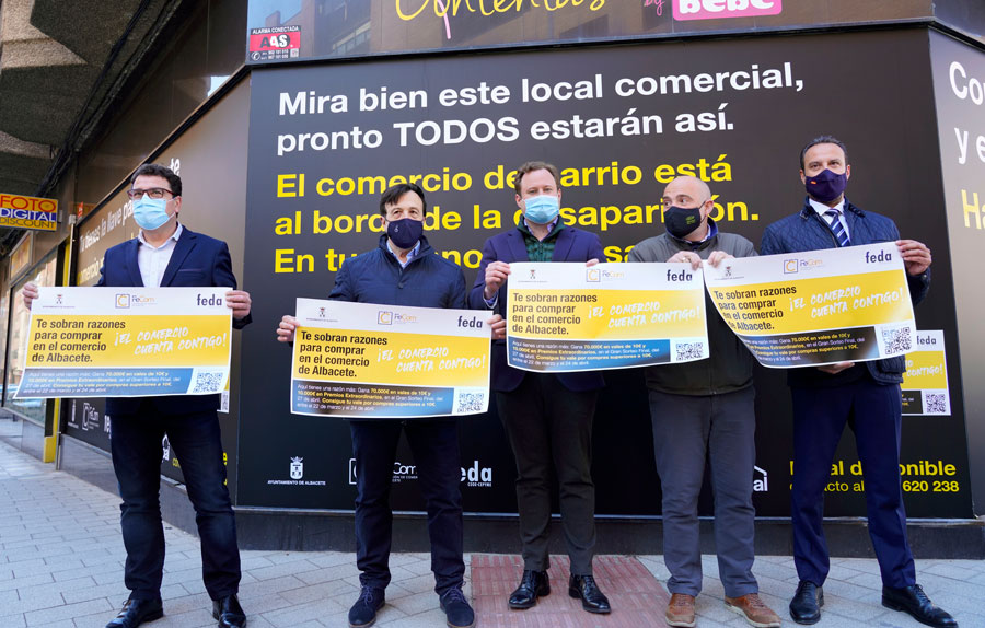 El alcalde ha dado las gracias a FECOM y a FEDA por su esfuerzo al implicar a 500 establecimientos comerciales de la ciudad, “os necesitamos”, le ha dicho el regidor municipal, que a continuación ha reiterado el apoyo del Ayuntamiento de Albacete a esta entidad y al sector del comercio. La campaña que hoy se materializa se financia con cargo al convenio que ambas entidades firmaron en 2020, por un importe de 150.000 euros. Dicho convenio se reeditará este 2021, con una aportación municipal de 100.000 euros, pero además ha anunciado el alcalde, que el borrador del Presupuesto de 2021 se ha previsto una partida de 500.000 euros para ayudas al sector del comercio y la hostelería.