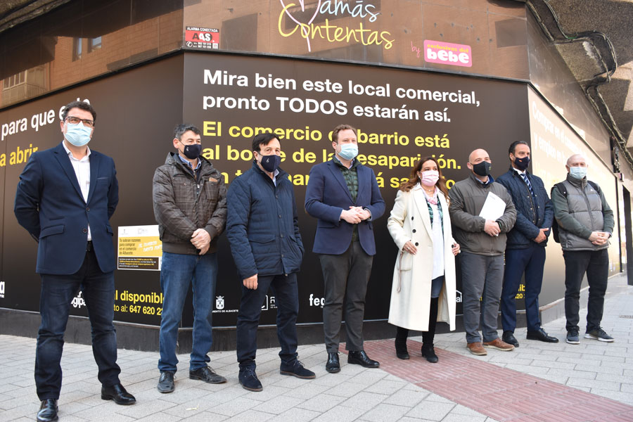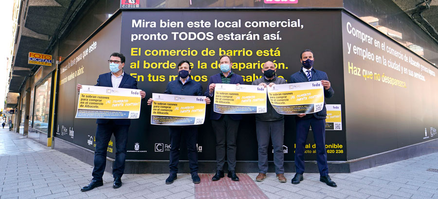 La calle Caba ha sido el escenario de la presentación “Te sobran razones para comprar en el comercio de Albacete”, la mayor campaña de apoyo al comercio local que se ha lanzado en la historia reciente de la ciudad, pues en la misma la Federación de Comercio, FECOM, y el Ayuntamiento de Albacete, han implicado a 500 comercios de la ciudad. La campaña cuenta con el apoyo y la coordinación de FEDA, donde está integrada la Federación de Comercio, así como la Asociación de Gestores Inmobiliarios de Albacete, AGIPAL, que ha colaborado poniendo a disposición de la misma los escaparates de locales comerciales vacíos para sacar esta acción a la calle.