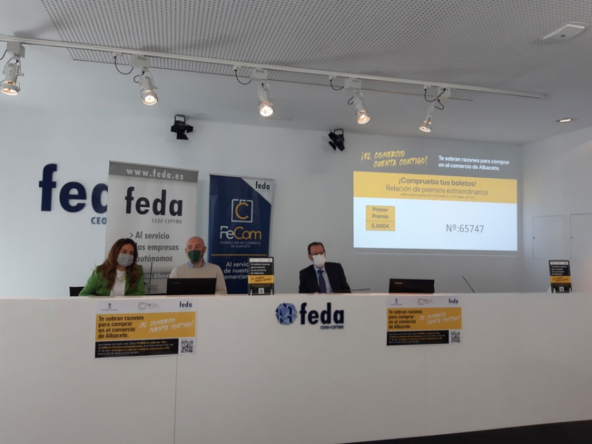 La sede de FEDA ha acogido el sorteo, ante notario, que ha convocado la Federación de Comercio de Albacete, FECOM, de los premios extraordinarios de la campaña “Te sobran razones para comprar en el comercio de Albacete”.