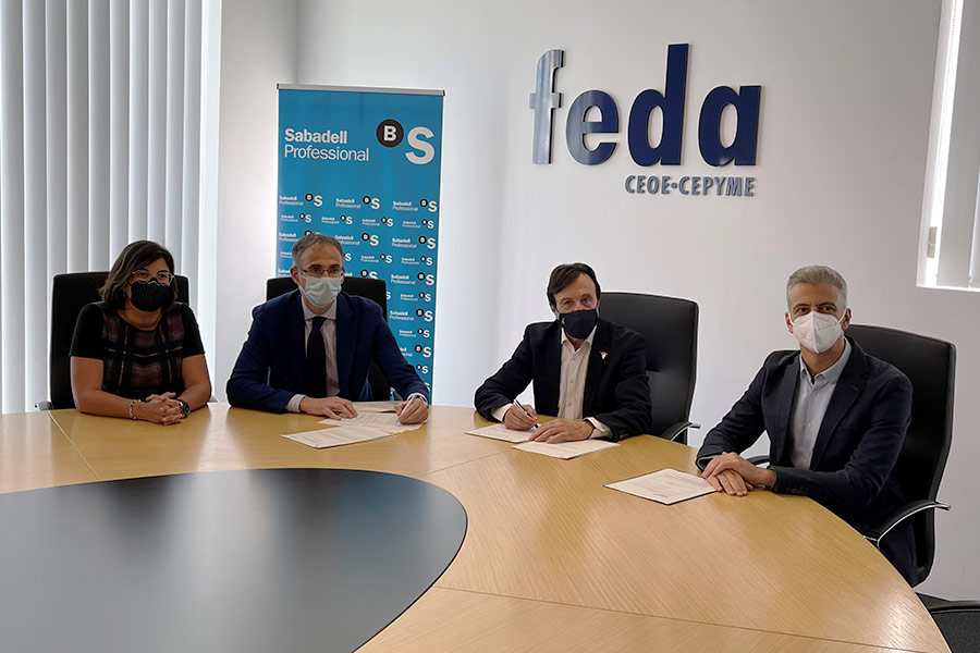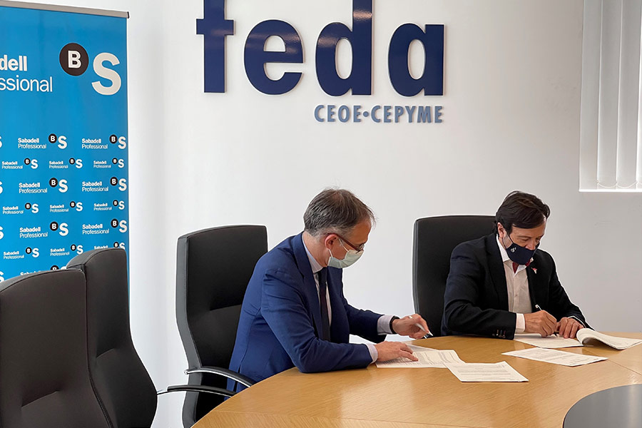FEDA ha firmado la renovación del convenio de colaboración con Banco Sabadell. Gracias al mismo, el banco seguirá brindando a todos los asociados una amplia oferta, en condiciones preferentes, de productos y servicios adaptados a sus necesidades.