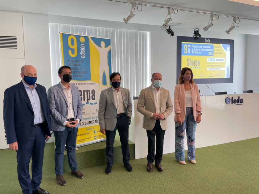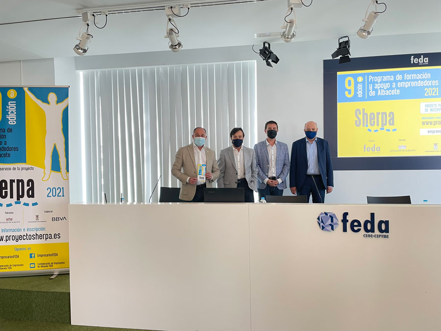 El presidente de FEDA, Artemio Pérez Alfaro, ha sido el encargado de presentar hoy a los medios de comunicación la novena edición del Programa Sherpa, la iniciativa que nació en 2013 de la mano de la Confederación y con el apoyo de la Diputación de Albacete. A la misma, ediciones posteriores se unieron Ayuntamiento de Albacete y BBVA, que continúan confiando en este programa para lanzar a los emprendedores al mundo de la empresa.