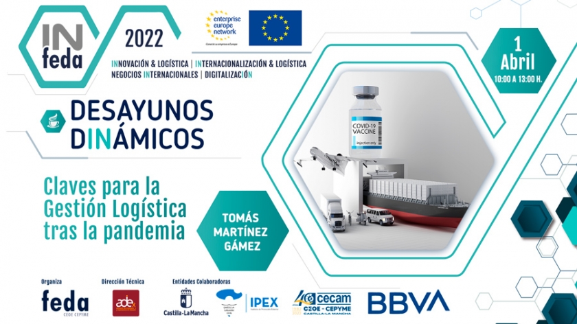 Este viernes, día 1 de abril, se celebra el primer IN-FEDA 2022, que se iniciará a las 10,00 horas. Desayuno dINámico "Claves para la gestión logística tras la pandemia”, que estará a cargo de Tomás Martínez, jefe de Proyecto en consultoría, participando en diferentes proyectos de mejora de las operaciones en empresas de sectores químico y del mueble. En la actualidad, es director de Operaciones del Grupo Pikolinos y como tal, ha desarrollado y gestiona la cadena de suministro de la compañía, optimizando la productividad y los costes. Imparte clases de Dirección de Operaciones y Cadena de Suministro en EDEM, Escuela de Negocios FEDA, Fundesem, en la Universidad Miguel Hernández (U.M.H.) y en la Asociación para el Desarrollo de la Logística (A.D.L.).