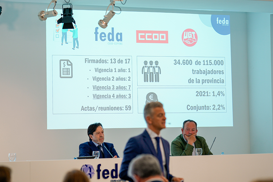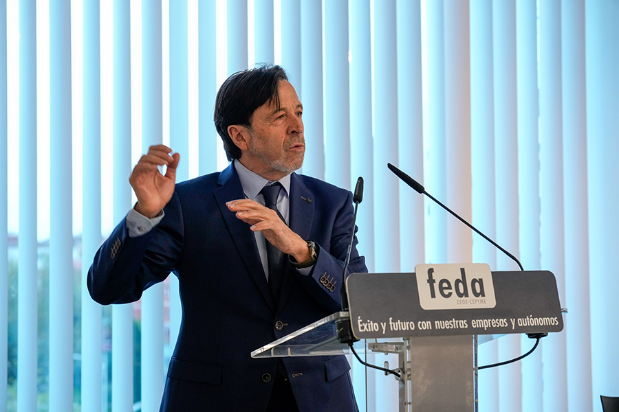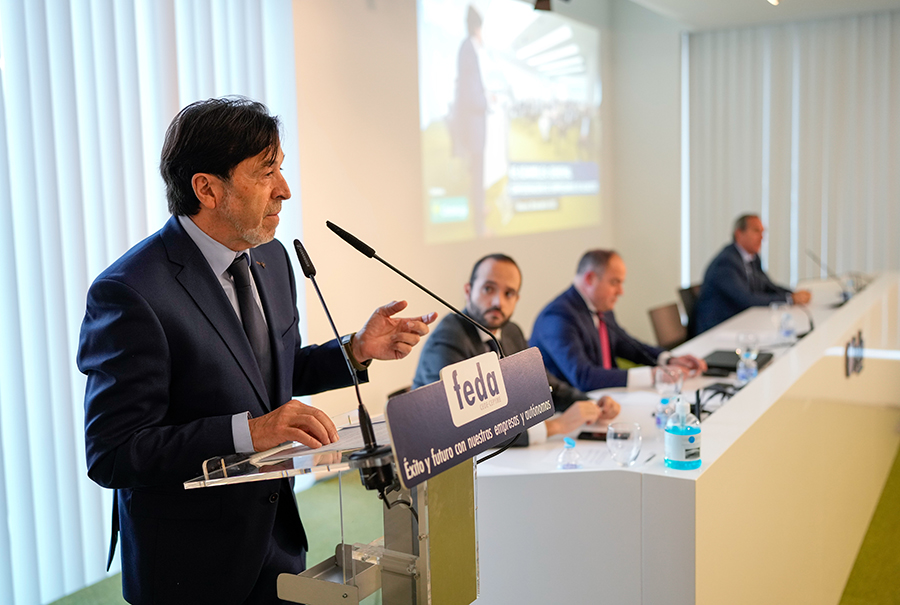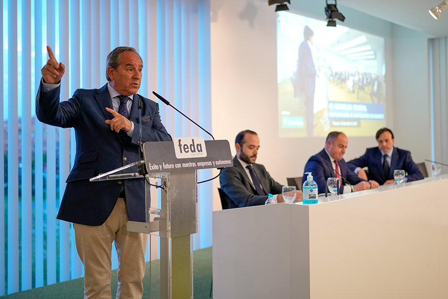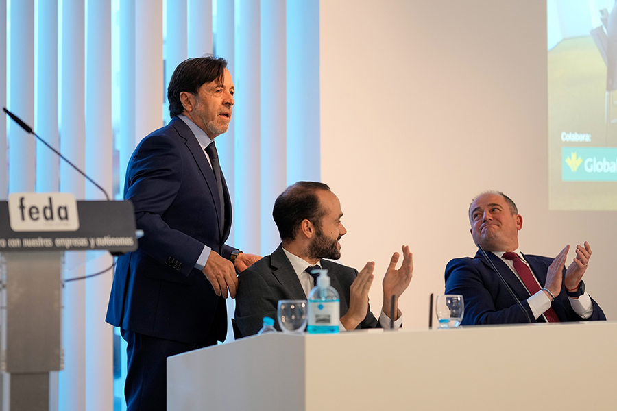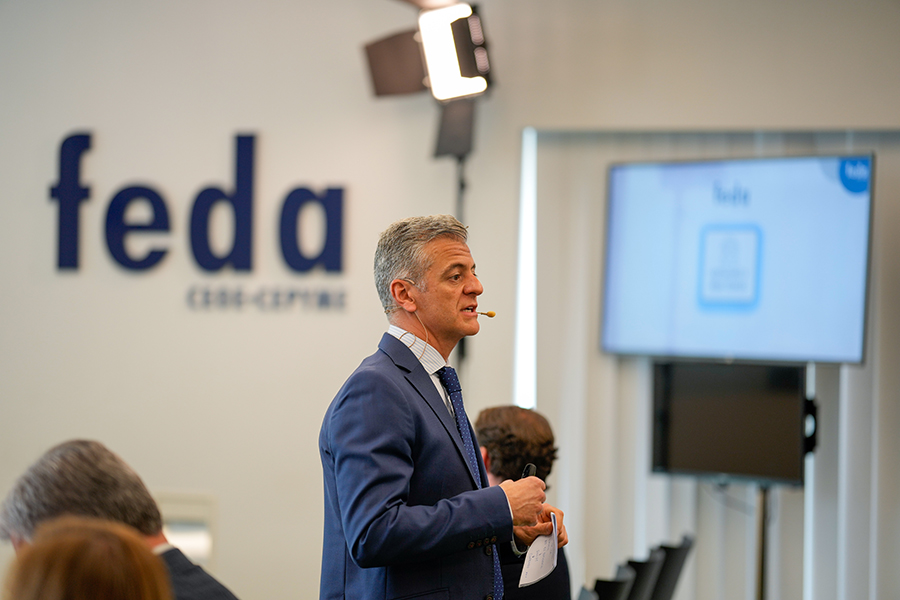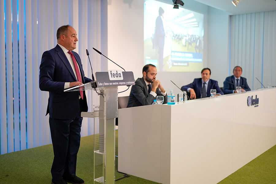 A nivel formativo, Vicente García hizo alusión al Programa IN-FEDA, con más de 100 asistentes, de 60 empresas de diferentes sectores y una valoración de 4’67 sobre 5. Más de 530 alumnos pasaron por los diferentes cursos de Formación Subvencionada impartidos en la Confederación. También destacó el incremento de la Formación In Company ofrecida por la Escuela de Negocios FEDA, la creación del Club Alumni, un punto de encuentro donde fomentar el diálogo, el intercambio de experiencias e ideas entre alumnos, y por último, dio datos del Programa Sherpa, por el que han pasado casi 300 participantes en las nueve ediciones celebradas.