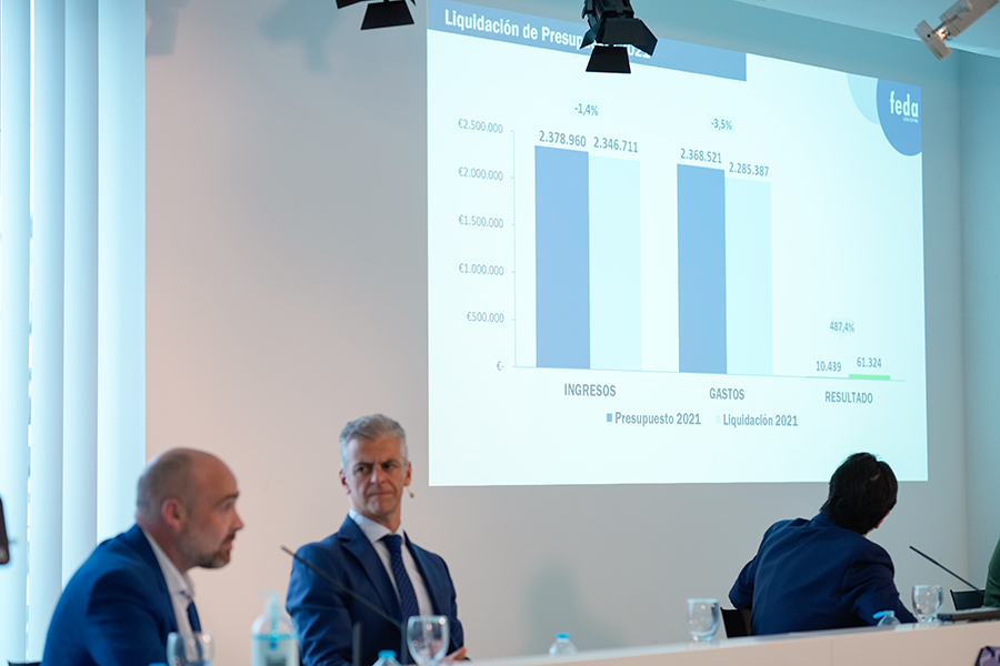En la primera parte de la 45 Asamblea General de FEDA se procedió a la liquidación del ejercicio 2021 y a la aprobación, por unanimidad, del presupuesto para el ejercicio 2022. Unos datos económicos que ofreció de forma detallada el tesorero de la Confederación, José Lozano Tendero.