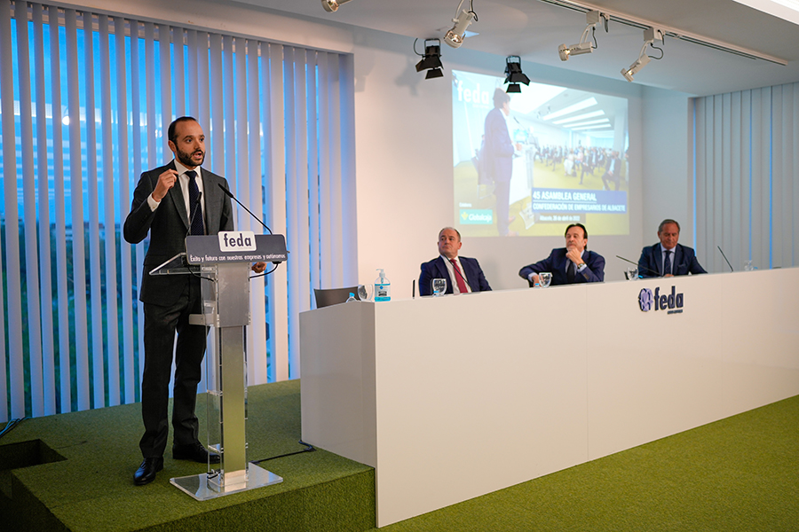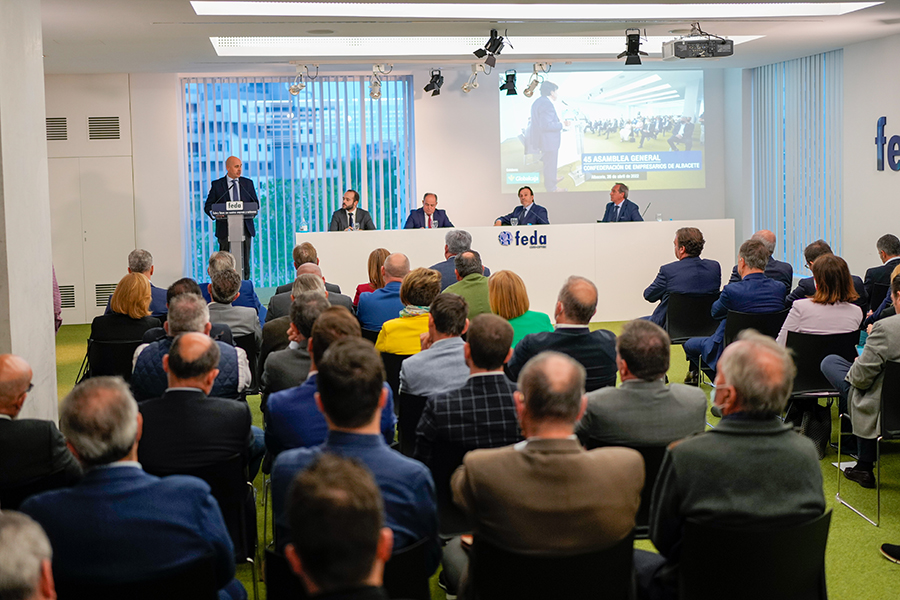 La Confederación de Empresarios de Albacete, FEDA, celebró su 45 Asamblea General, un acto en el que el presidente de la organización, Artemio Pérez Alfaro, se mostró optimista de cara al futuro, reclamó una bajada de impuestos para pymes y autónomos y puso en valor el buen hacer del equipo de trabajo de FEDA, que un año más sigue al pie del cañón mejorando día a día los servicios que ofrece la Confederación a empresas, asociaciones, autónomos y autónomas.
