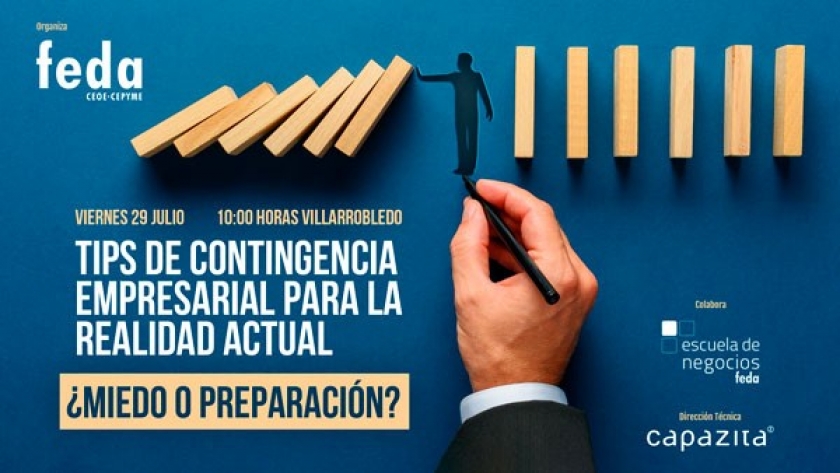 Así, desde el servicio de FEDA Apoyo a Inversión y Escuela de Negocios FEDA, con la Dirección Técnica de nuestro partner estratégico CAPAZITA, se ha planteado en la Delegación de FEDA en Villarrobledo un jornada, este próximo viernes, día 29, a las 10,00 horas, en la que se tratarán algunos tips de contingencia para abordar la situación actual, partiendo desde el análisis de un contexto, recomendaciones y el cómo hemos ayudado en estas situaciones a las empresas de nuestra provincia.