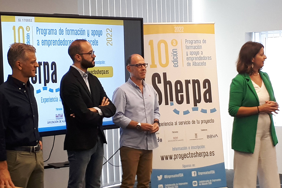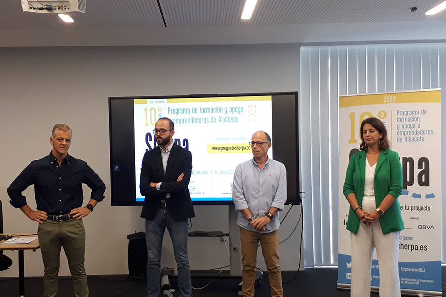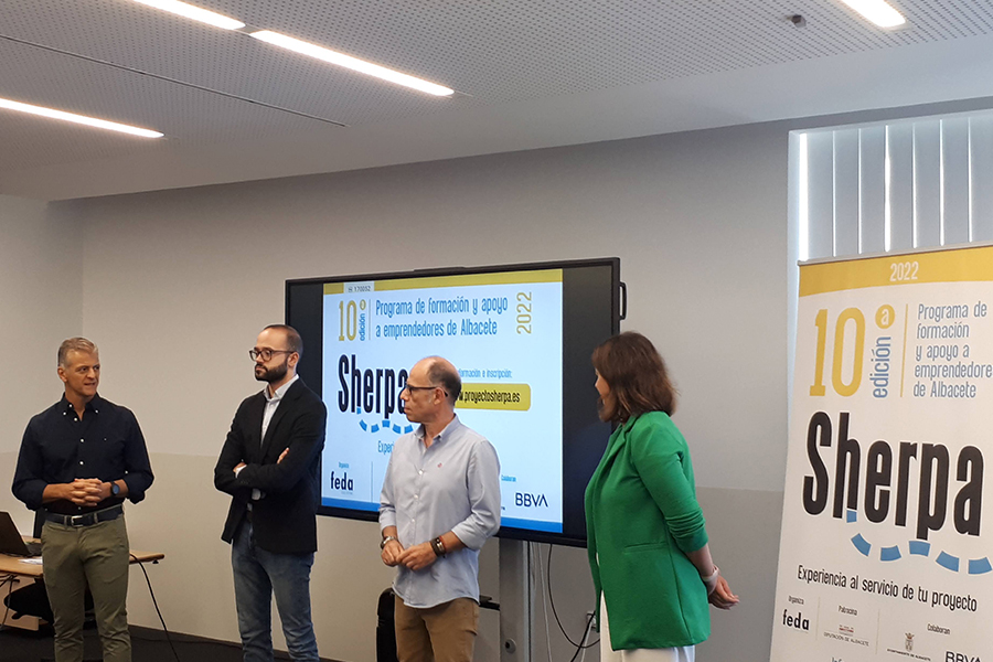 Trece mujeres y once hombres han recibido en FEDA la bienvenida a la décima edición del Programa Sherpa, de apoyo a emprendedores, que bajo la dirección técnica de la Confederación de Empresarios de Albacete, cuenta con la colaboración de la Diputación Provincial de Albacete, el Ayuntamiento de Albacete y el BBVA, poniendo de manifiesto la apuesta que, edición tras edición, dichas instituciones y entidad financiera realizan por el apoyo a los emprendedores de nuestra provincia, y por la creación de riqueza, desarrollo y empleo.